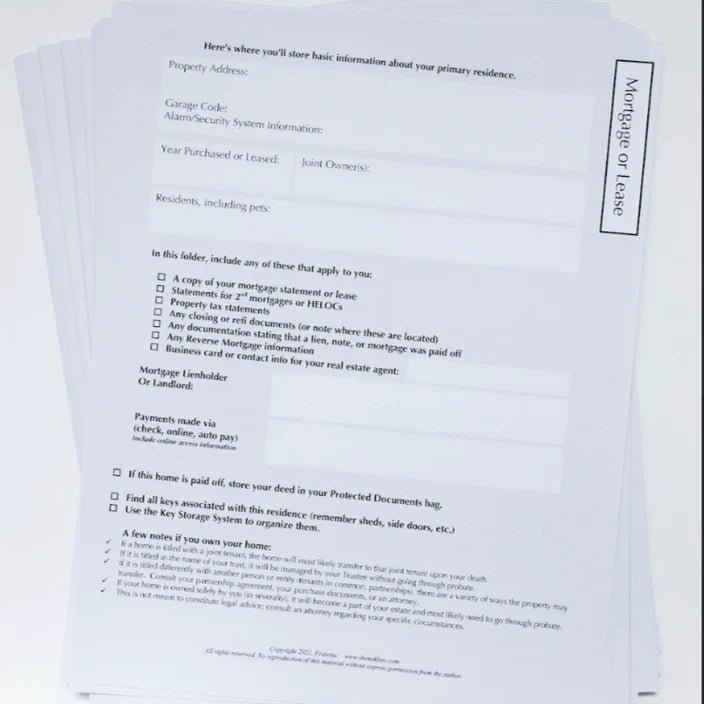 On the back of each sheet, there are instructions for your Next of Kin: The Noklist. These instruct the NOK on what they need to gather, and gives them a place to keep it organized, managed and accounted for.